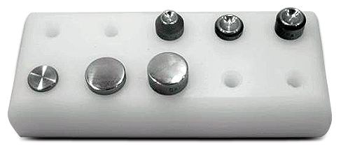 Six piece set of the most commonly used squeezer sets shown above: 3/32" & 1/8" cup sets; 1/8” modified cup set; 1/8" & 1/4" flush sets; & 1/16” by 3/8” dia. flush set; plus #4510 organizer block. |