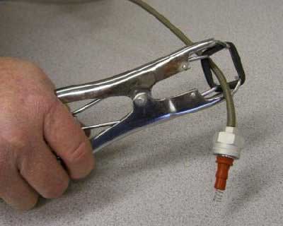 Insert grommet over end of Grommet Stretching Tool Squeeze handle to spread the grommet Insert cable through grommet and release the squeeze on tool handle Remove the grommet from tool by sliding grommet off the ends |
