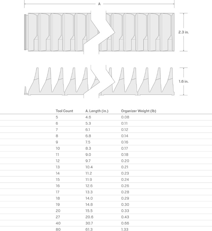![]() A Compact Custom Wrench Organization System Fits a Wide Range of Wrench Sizes and Types The tapered shape of the slots allows them to hold a wide range of wrench sizes at orderly angles and with consistent spacing. ![]() Feet Grip Drawer Liners ![]() Durable Polypropylene Construction ![]() ![]() |