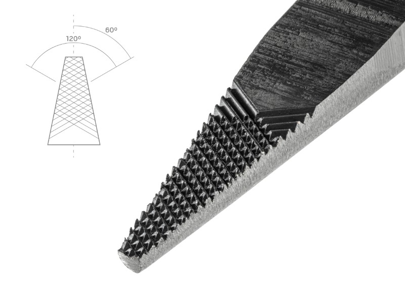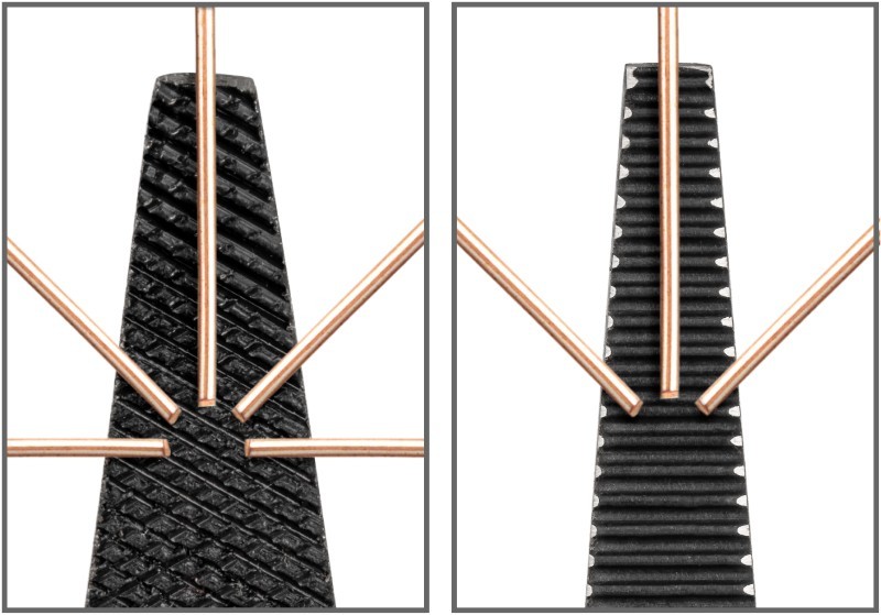![]() ![]() ![]() ![]() Generous Reach A smooth 70-degree bend works around obstructions. Originating from a point more than halfway down the jaw, the bent section is exceptionally long, offering a generous reach into tight, narrow spaces. ![]() Crosscut Teeth Oriented at 120 degrees to each other, the serrations are cut in two passes to form regularly-spaced, diamond-shaped teeth. ![]() Grip in All Directions Unlike straight serrations where the grip strength varies relative to tooth direction, a crosscut pattern grips evenly in any direction. ![]() Range of Tooth Types Smaller pliers with fine teeth are best for smaller precision applications and result in less marring of the work piece. Larger pliers with more aggressive teeth provide a stronger grip on less delicate parts. ![]() Lean and Practical Grips Single-layer vinyl grips offer a bit of comfortable cushion and provide a smooth, yet nonslip surface. They're slim, not thick and bulky, so they stay out of the way when space is tight and are always easy to handle, even with gloves on. ![]() Non-absorbing and resistant to most common fuels, lubricants, and cleaners. Won't get soft or sticky over time. Easy to wipe clean. |