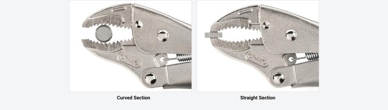 The curved section locks onto hex-shaped bolt heads, rounded-off nuts, pipes, and square tubing with the aggressive bite of deep, sharp teeth. The straight tip clamps flat stock, L-angle, and sheet metal with shallow, closely spaced teeth for an evenly distributed grip. ![]() Pull-to-Release Lever Easily set, release, and reposition the clamp with one hand and with more control than a traditional pinch-style lever. Large Adjustment Knob The adjustment knob is knurled and round to provide grip for making adjustments even when you’re wearing gloves or have slippery hands. ![]() Tensioning Through-Hole Get extra leverage and fine-tune your clamping force by inserting a screwdriver or hex key into the through-hole to create a T-handle. ![]() High-Strength Rivets Three main rivets work together to make up the 4-point mechanical structure of the pliers and give it its strength. To make sure ours can withstand high shear forces, the rivets are made from tough 4135 chromium molybdenum steel. ![]() Strong Jaws and Teeth The jaws are made from 4140 chromium molybdenum steel, an alloy that offers toughness, machinability, and corrosion resistance. The teeth are hardened to 45-50 HRC and should not chip or strip even on fasteners up to Grade 8 or Class 12.9. ![]() Durable Nickel-Plated Finish Before assembly, the individual jaw, handle, lever, and crossbar parts are shot-peened to create smooth, consistent surfaces. The final finish is a durable nickel plating that protects against corrosion. ![]() |