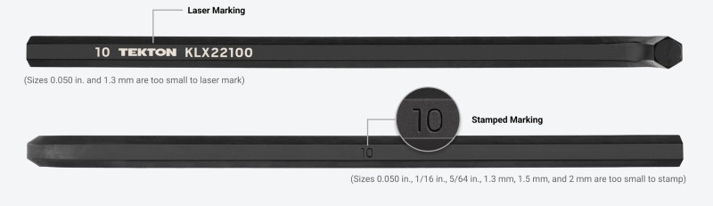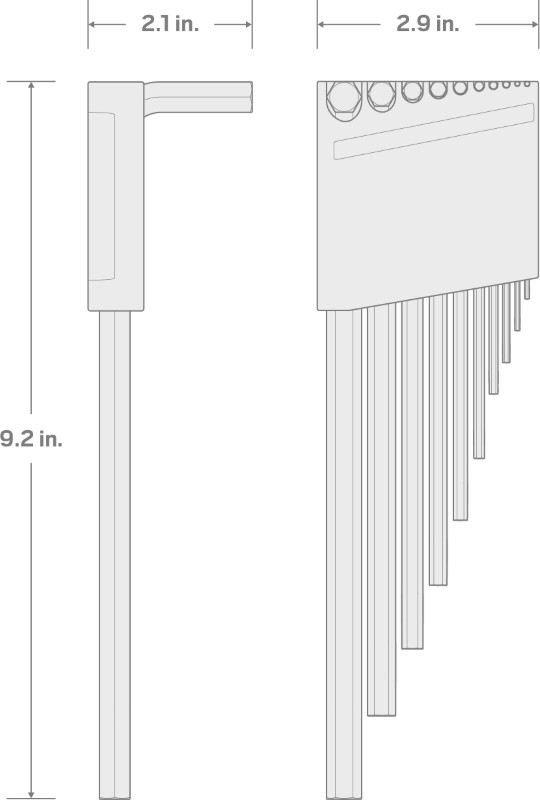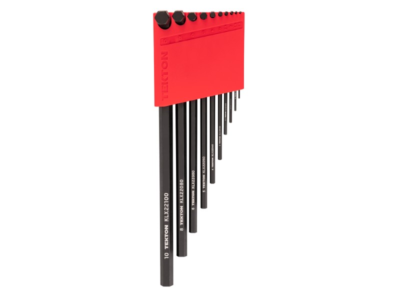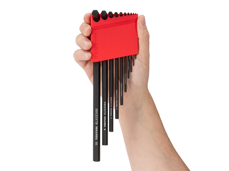 High Leverage We designed the keys to be longer to increase leverage where it matters. ![]() Tight Fit with Fasteners We precisely manufacture our hex key geometry on the large end of the applicable range, resulting in less slop in fasteners. ![]() Two Measures of Tolerance Control We measure our hex key tolerances in two ways, from point-to-point and side-to-side, to ensure the highest standards of dimensional accuracy and consistency. Refined Edges Tekton keys have slightly chamfered edges (except sizes that are too small to be chamfered: 1.3 mm, 1.5 mm, 2 mm, 0.050 in., 1/16 in., and 5/64 in.) and a smooth top face to optimize engagement with fasteners. ![]() Materials and FinishesMaximum Torque Strength We make our L-keys with 8660 nickel chromium molybdenum steel that's heat-treated to 54-58 HRC to produce tools that are hard, but not brittle. As a result, the maximum torque of the L-keys consistently exceeds the ASME standards for minimum torsion load and the ISO standards for minimum proof torque. ![]() Corrosion-Resistant Finish We coat all of our keys with a durable manganese phosphate finish that’s resistant to corrosion. ![]() Clear Markings With the exception of the smallest sizes, Tekton L-key sizes are marked in two ways—both with a high-visibility laser marking and a stamped marking. ![]() Orginization FeaturesQuick Access We designed the holder to organize the L-keys facing forward so you can easily access each tool without having to move others out of the way. ![]() Low-Profile Organization You can also face the L-keys to the side for a flat, low-profile organization solution. ![]() Self-Aligning Key Slots The slots are uniquely shaped to guide the head of each L-key into alignment with the others. Durable Material The holder provides a firm, flexible grip and resists cracking or breaking. ![]() |