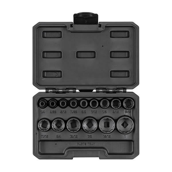 Two Size Markings The size is marked in two ways on every socket—both as a high-visibility laser marking and a permanent stamped marking ![]() Full-Length Socket Well While the overall socket is a standard length, the interior well extends fully into the socket, which allows for better fastener engagement in more situations. ![]() Drive Tool Retention Each socket works with both types of anvils found on 1/4 inch drive impact wrenches: ![]() ![]() 12-Point Socket Opening Provides an exact fit for 12-point fasteners. ![]() Prevents Fastener Round-Off Radiused corners prevent fastener round-off by applying force to a fastener's flat sides, rather than its corners. ![]() Sockets Exceed ANSI Torque Standards - Each socket size meets a minimum of 1.2 times the ANSI/ASME standard for proof torque. - (A single-cycle test applies torque until a specified value is reached without failure or permanent deformation.) ![]() High-Performing Steel Alloys Part by part, we choose the best combination of steel alloys, heat treating specifications, and forming processes to meet the highest performance requirements. ![]() Note: There are no published ASME standards for 1/4 in., 9/32 in., 13/16 in., 7/8 in., 15/16 in., 1 in., 6 mm and 7 mm impact sockets in 3/8 inch drive. Carrying Case High-density polyethylene case withstands common lubricants, fuels, and solvents. ![]() |