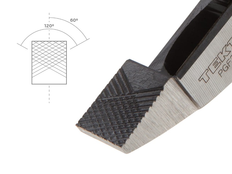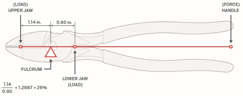 ![]() ![]() ![]() ![]() Broad, Flat Jaws Nearly square, with a straight, flat nose, these jaws can bend thin, flat pieces like metal tabs, mounting brackets, and cable clamps to a crisp right angle. ![]() Gap Spacing Holds Wire Ends A small gap (1 mm ±0.5 mm) allows the jaw faces to remain nearly parallel while holding the ends of multiple wires, keeping each wire flat and in position while twisting them together. ![]() ![]() Crosscut Teeth Oriented at 120 degrees to each other, the serrations are cut in two passes to form regularly-spaced, diamond-shaped teeth. ![]() Grip in All Directions Unlike straight serrations where the grip strength varies relative to tooth direction, a crosscut pattern grips evenly in any direction. ![]() Range of Tooth Types Smaller pliers with fine teeth are best for smaller precision applications and result in less marring of the work piece. Larger pliers with more aggressive teeth provide a stronger grip on less delicate parts. ![]() High-Leverage Lower Jaws Because they are located below the pivot and a little closer to the fulcrum, the lower jaws can exert about 30% more force than the main jaws, useful for crushing functions like closing wire clamps and crimping connectors. ![]() ![]() Clean Cut with Minimal Effort Machining the blades to an optimized 65-degree angle allows them to be strong yet sharp, producing a satisfyingly smooth, clean cut that requires minimal effort. ![]() INDUCTION HARDENED: After the full pliers have been heat treated, a secondary induction-heating process hardens just the blades to 58-64 HRC, making them extremely durable and able to cut tougher materials. KNIFE-TO-KNIFE: Comprised of two opposing blades that meet in the center, it is an extremely reliable cutting method, especially for harder wires. For a clean, low-effort cut, it requires a high level of manufacturing expertise to produce the near perfect alignment of the blades. When this cannot be consistently achieved, some manufacturers may turn to a less effective knife-and-anvil design (one knife blade, one blunted blade) that doesn't require such precise alignment. Cutting Capacities ![]() Wide Profile Handles Generous in overall size, the handles have an extra wide, gently rounded profile that creates a large, smooth contact surface. This spreads out the pressure against your hand so you can comfortably squeeze as hard as needed. ![]() Lean and Practical Grips Single-layer vinyl grips offer a bit of comfortable cushion and provide a smooth, yet nonslip surface. They're slim, not thick and bulky, so they stay out of the way when space is tight and are always easy to handle, even with gloves on. ![]() Non-absorbing and resistant to most common fuels, lubricants, and cleaners. Won't get soft or sticky over time. Easy to wipe clean. |