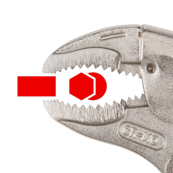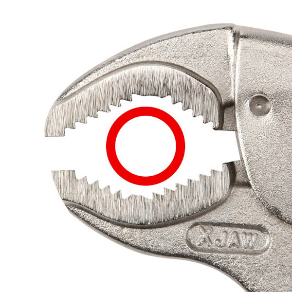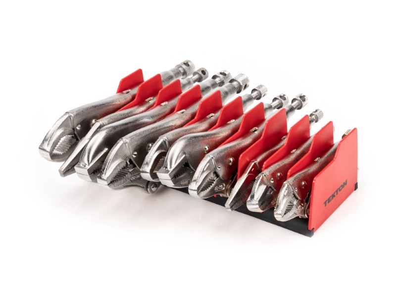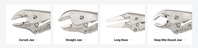Jaw Variety![]() Pull-to-Release Lever Easily set, release, and reposition the clamp with one hand and with more control than a traditional pinch-style lever. Large Adjustment Knob The adjustment knob is knurled and round to provide grip for making adjustments even when you’re wearing gloves or have slippery hands. ![]() Tensioning Through-Hole Get extra leverage and fine-tune your clamping force by inserting a screwdriver or hex key into the through-hole to create a T-handle. ![]() High-Strength Rivets Three main rivets work together to make up the 4-point mechanical structure of the pliers and give it its strength. To make sure ours can withstand high shear forces, the rivets are made from tough 4135 chromium molybdenum steel. ![]() Strong Jaws and Teeth The jaws are made from 4140 chromium molybdenum steel, an alloy that offers toughness, machinability, and corrosion resistance. The teeth are hardened to 45-50 HRC and should not chip or strip even on fasteners up to Grade 8 or Class 12.9. ![]() Durable Nickel-Plated Finish Before assembly, the individual jaw, handle, lever, and crossbar parts are shot-peened to create smooth, consistent surfaces. The final finish is a durable nickel plating that protects against corrosion. ![]() Organizer Rack The included pliers organizer rack keeps the tools upright and saves space in tool cabinet drawers or tabletop surfaces. At 2.7 inches tall, the pliers rack fits well in most toolbox drawers. ![]() |