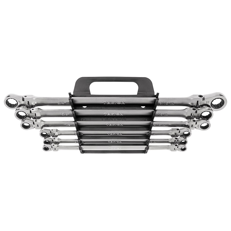 Tekton Long Flex Head 12-Point Ratcheting Box End Wrench Set With Holder - 6 Piece Set