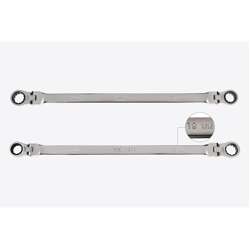 180º Flex Heads The flex head sweeps smoothly through 180 degrees without any set positions. This allows the wrench to operate at any angle and navigate around obstructions in its swing path. 12-Point Box Ends Fits multiple types of fasteners, including 6-point, 12-point, and square. Clear Markings Tekton flex head ratcheting wrenches are permanently marked in two ways: a high-visibility laser marking and a stamped marking. ![]() Smooth, Satin Chrome Finish We make our ratcheting wrench bodies from 6140 chromium-vanadium steel and heat-treat them to 42-49 HRC. The wrenches are abrasive-blasted to create a finely textured finish, which is then plated with trivalent chromium. |