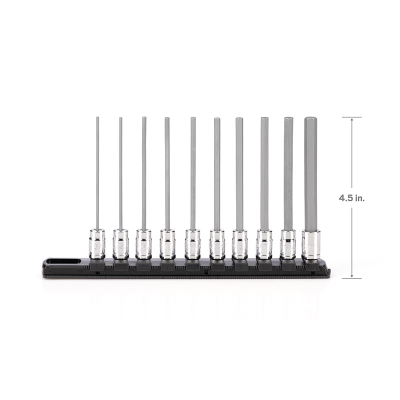 Tekton 1/4 Inch Drive Long Hex Bit Socket Set with Rail, 10-Piece (5/64-5/16 in.)