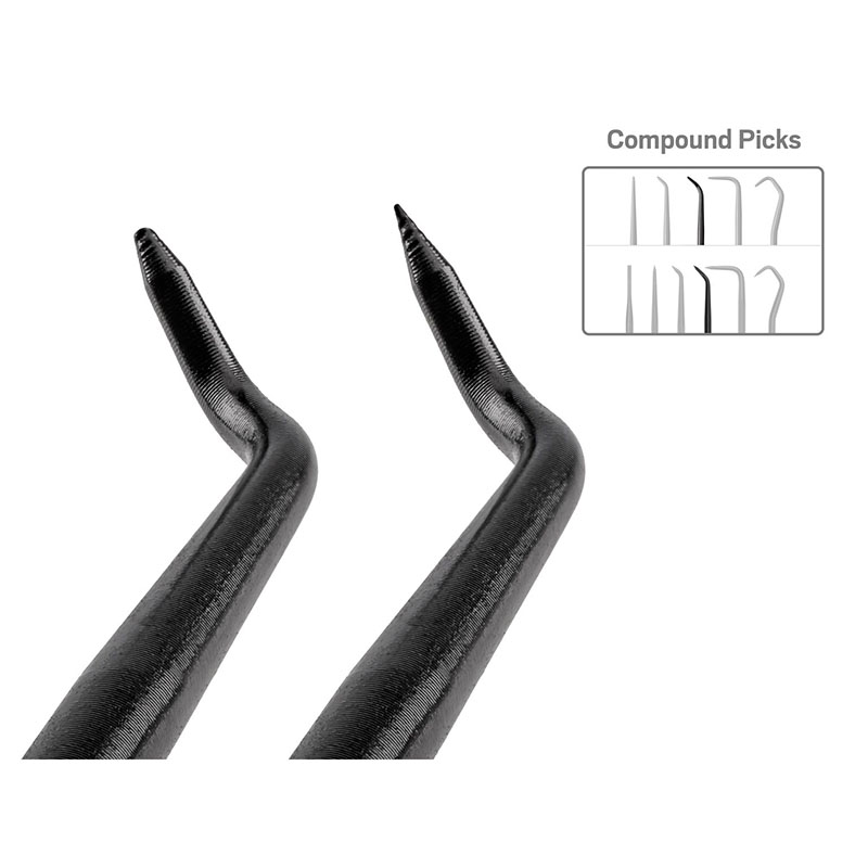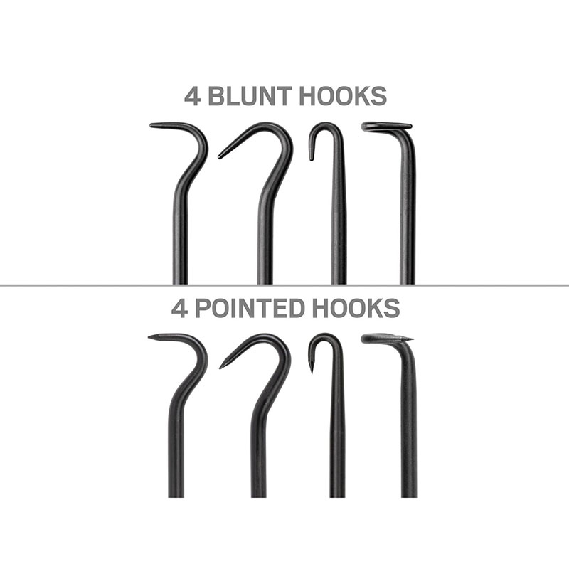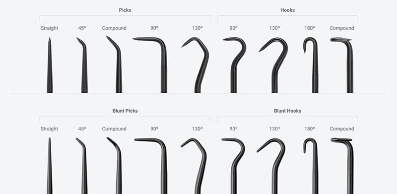 ![]() Sharp Point for Precise Work Each tip comes to a sharp 30-degree tapered point for precise scraping, piercing, and scribing. ![]() Blunt Point for Delicate Work The rounded tip has a 0.040 inch diameter (about the size of a ballpoint pen tip) that reduces the risk of damage to soft or fragile workpieces. ![]() Resists Twisting Out Two "wings" on the base of the blade help it resist being twisted or pulled out of the handle. ![]() Versatile Handle The classic square handle is long and slender with contoured sides for overall versatility and maneuverability. ![]() Materials and Construction ![]() ![]() Manufactured in Michigan Our family of mini pry bar, pick, and hook products is made entirely in Michigan with only USA-sourced materials. Machining, bending, coining, handle molding, and press-fitting the handle and blade take place at our Grand Rapids, Michigan, manufacturing facility. ![]() |