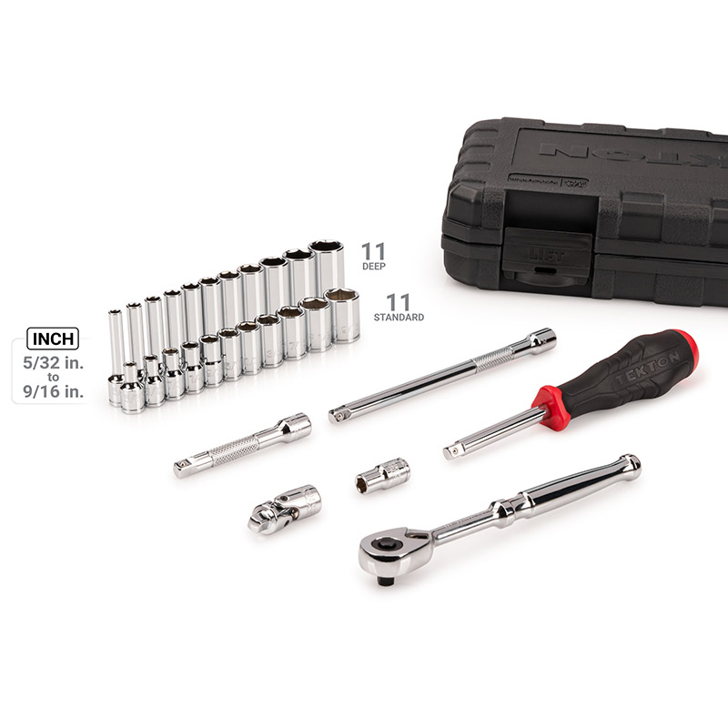 Tekton 1/4 Inch Drive 6-Point Socket and Ratchet Set with Case - 28-Piece (5/32-9/16 in.)