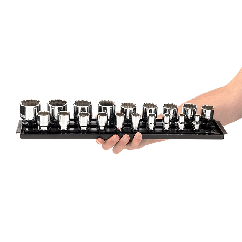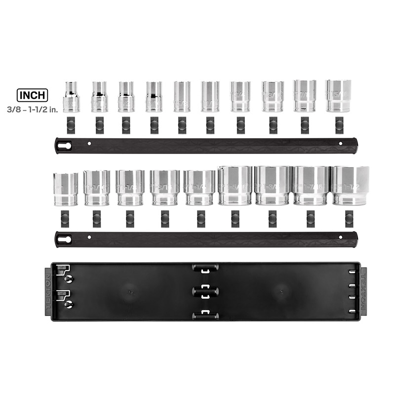 Tekton 1/2 Inch Drive 12-Point Socket Set with Rails and Tray - 19-Piece (3/8 - 1-1/2 in.)