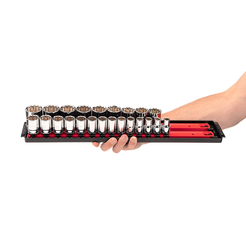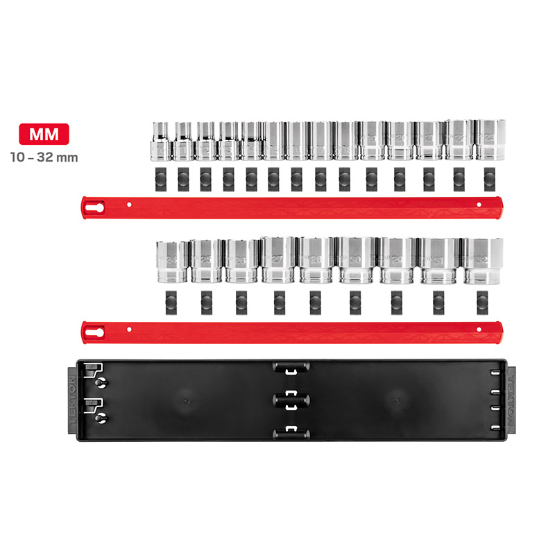 Tekton 1/2 Inch Drive 12-Point Socket Set with Rails and Tray, 23-Piece (10-32 mm)