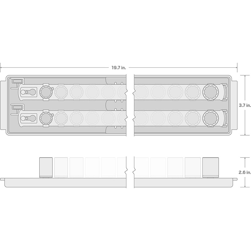 Large, Stamped Markings - Permanently impressed into the material by a roll-stamp die. - As large as possible while still being readable along the socket's curved surface - Clearly visible size numbers with extra-deep outline ![]() Exterior and Interior Finishes - Chrome-plated exterior is highly corrosion resistant and wipes clean to a mirror finish - Interior is protected against rust with clear coat, rather than commonly-used metallic paint ![]() 12-Point Socket Opening Get more access positions for multiple types of fasteners. ![]() ![]() Prevents Fastener Round-Off Radiused corners prevent fastener round-off by applying force to a fastener's flat sides, rather than its corners. ![]() Secure Drive Tool Engagement Detent grooves and beveled edges provide a smooth and secure connection with the drive tool. ![]() High Torque Strength Meets minimum value of 1.2 times the ANSI standard for Proof Torque. Verified by a single-cycle test that applies torque until specified value is reached without failure or permanent deformation. ![]() Socket Rail Organization - Patented twist-to-lock design securely holds sockets on the rail - Keyhole slot mounts to wall or workbench - Combine multiple socket rails with trays and other accessories ![]() |
