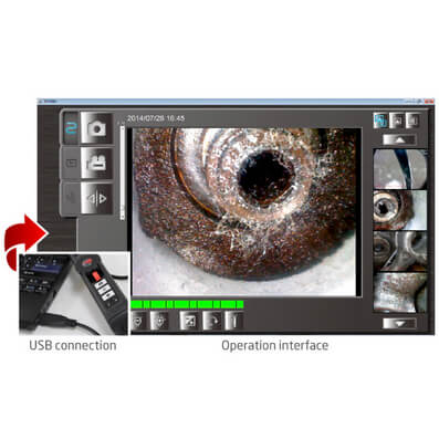 Vividia D3160 USB Digital One-Way Articulating Borescope has 5.9mm diameter camera probe and 1 meter long insertion tube (one-way articulation, 5.9mm diameter and 1 meter long, USB borescopes endoscope). D3160 can only be bent in one direction, and the maximum bending angle is ~180 degree. The insertion tube has metal braided outside layers and the bending part is also made with stainless steel, which offers good abrasion resistance. With USB connection, one can connect Vividia D3160 Digital Borescope to a Windows PC (WIndows XP, 7, 8 and 10), MacBook, android devices (phone or tablet) directly. With additional Vividia VA-B2 AirBox wireless converter and "AirBox-Vividia Ablescope", D3160 can be used with iPhone and iPad. End users can easily take pictures and videos with free software or app. The LED brightness can be adjusted. Vividia D3160 Articulating Borescope is an ideal tool for automotive, airplane, aviation, manufacturing, and instrument inspections. The smaller than 6.0mm diameter of D3160 makes it a good borescope for diesel engine inspection. Vividia D3160 USB Digital One-Way Articulating Borescope has 6mm diameter camera probe and 1 meter long insertion tube. D3160 can only be bended in one direction, and the maximum bending angle is ~180 degree. The insertion tube has metal braided outside layers and the bending part is also made with stainless steel, which offers good abrasion resistance. With USB connection, one can connect Vividia D3160 Digital Borescope to a Windows PC (WIndows XP, 7, 8 and 10), MacBook, android devices. Vividia D3160 Articulating Borescope is an ideal tool for automotive, airplane, aviation, manufacturing, and instrument inspections. The small diameter probe of D3160 borescope makes it good for diesel engine inspection. |