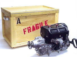 Want to send your engine to us for repairs but don't want to hassle with crating and shipping hassle?? Use our exclusive crating and pick-up service that basically does everything for you. We UPS one of our small fleet of specially designed super duty wooden shipping crates, you bolt your engine on the enclosed ¼" aluminum plate, drop it in our crate and with four wing nuts seal it up. Then CPS issues an electronic call tag to UPS instructing them to come to your address for a pick-up, the driver puts the label on the crate and sends it to CPS. After the repairs are completed the engine is returned to you in the same crate. CPS then issues a second electronic call tag and the crate is returned to CPS empty. Avoid the hassle of designing crates and waiting in line to ship your stuff by using our exclusive out and back shipping service. Our wooden crates are super tough - designed to withstand any package handling and shipping. Holds any two stroke with the gearbox attached in most cases. |