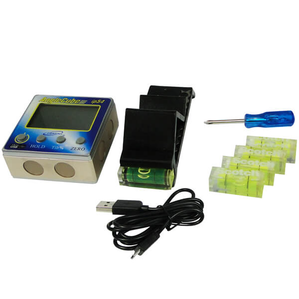 The Protector is a precision, highly accurate and simple to use device for checking, setting or changing propeller pitch. The resolution and repeatability is 0.05 degree and the accuracy is +/- 0.1 degree. It is powered with a standard 9 volt battery with approximately one year use life. The Angle Cube can be used for other angle measuring applications such as checking and adjusting wing incidence, rotorcraft blade angles and tail-dragger ground angles. Aside from aircraft or airboat use, the gage can be used for measuring or setting table saw blade angles, machining or drilling angles or any other application requiring precision angle measurement. Magnets on three sides can be used to hold the unit to appropriate surfaces. When the Angle Cube is magnetically attached to the protractor clip, the unit becomes a simple and accurate tool to measure blade angles. |
