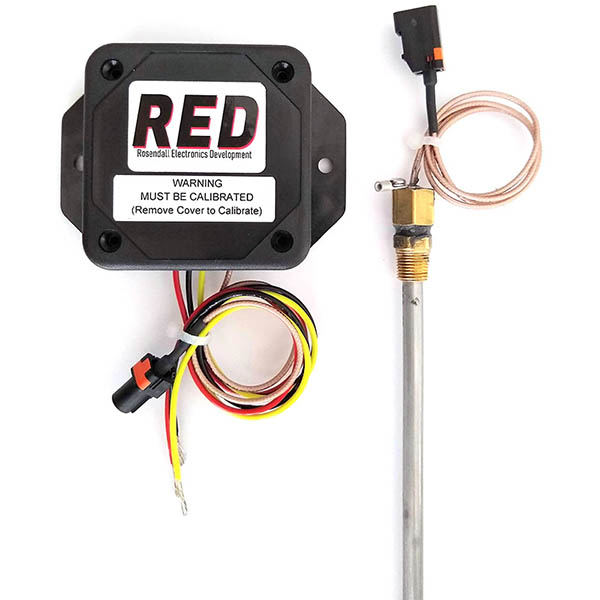 Capacitive Fuel Probe. Threads into a 1/8" FIP tapped hole. Can be configured to use 1, 2, or 5 set points. Available in 12, 18, 24 inch lengths (Can be shortened by installer) or can be custom ordered longer for an additional charge. |